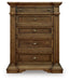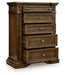 | Details | Made with hardwood solids, birch veneer and MDF substrate, Multi-step brown finish using stains and glaze with hand-rubbed details, Large metal oval knobs with antiqued brass-tone finish, 5 smooth-gliding drawers with fully finished interiors, dovetail construction and heavy-duty ball-bearing side glides, Top drawer felt lined | |