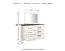 | Details | Includes dresser with mirror, Made of engineered wood (MDF/particleboard) and decorative laminate, White rustic finish with replicated cedar grain, Rustic gray planked replicated oak grain with authentic touch, 6 smooth-gliding drawers with faux linen lining, Large scale dark colored handles, Mirror attaches to back of dresser, Assembly required | |