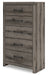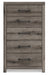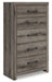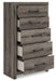 | Details | Made with engineered wood (MDF/particleboard/plywood) and decorative laminate for the right balance of affordability and durability, Weathered gray finish over replicated oak grain, Decorative laminate replicates natural or man-made material surfaces with consistent color, pattern and texture, Large-scale dark colored handles, 5 smooth-gliding drawers, Drawer interiors are lined with a faux linen laminate for a clean, finished look, Safety is a top priority, clothing storage units are designed to meet the most current standard for stability, ASTM F 2057 (ASTM International), Drawers extend out to accommodate maximum access to drawer interior while maintaining safety, Minor assembly required | |