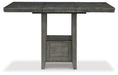 | Details | Made with hardwood solids, select acacia veneer and engineered wood, Antiqued gray finish, Storage base, Removable leaf, Seats up to 6, Assembly required | |