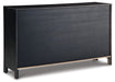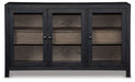 | Details | Made with wood, oak veneer and engineered wood, Black finish outside; warm gray finish inside, 3 glass panel door fronts, Metal knobs with black finish, 2 storage drawers, Assembly required | |