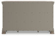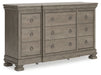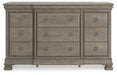 | Details | Made with hardwood solids, birch veneer and MDF substrate, Light gray finish enhances the natural wood grain, Ring pull hardware, 9 drawers with fully finished interiors, dovetail construction and ball-bearing side glides, Jewelry drawer conveniently located in the center valance | |