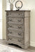 | Details | Made with acacia wood, birch and acacia veneers, engineered wood and cast resin components, Two-tone finish; antiqued gray body with a rich, deep walnut brown finish on top, Dark bronze-tone bails and knobs, 5 smooth-gliding drawers with dovetail construction, Framed drawer fronts, Overlay decorative corbels | |