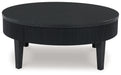 | Details | Made with hardwood solids, oak veneer and MDF substrate, Dark charcoal black finish over oak wood grain texture, Reeded apron, 2 drawers with fully finished interior, dovetail construction and heavy duty ball-bearing side glides | |