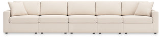 Details Includes 5 modular pieces: left-arm facing corner chair, 3 armless chairs and right-arm facing corner chair, "Left-arm" and "right-arm" describe the position of the arm when you face the piece, Modular pieces can float anywhere; sides are finished (with no connectors), Corner-blocked frame; reversible seat and back cushions; high-quality foam cushions wrapped in poly fiber, Throw pillows included; soft polyfill, Polyester upholstery, Next-Gen Nuvella™ is a family-friendly fabric that is soft, easy to clean, stain-resistant and durable, Easy-to-remove zippered covers for machine washing, Clean fabric with mild soap and water, let air dry; for stubborn stains, use a solution of 4 oz. bleach to 28 oz. water, Non-skid legs, Platform foundation system resists sagging 3x better than spring system after 20,000 testing cycles by providing more even support, Smooth platform foundation maintains tight, wrinkle-free look without dips or sags that can occur over time with sinuous spring foundations