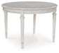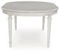 | Details | Made with hardwood solids, acacia wood veneer, MDF substrate and cast resin components, Antiqued white finish, Tabletop with butterfly-matched veneer pattern, Removable center leaf, Table extends by pulling both ends and dropping in leaf, Seats up to 6, Dining chairs sold separately, Assembly required | |