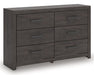 | Details | Made with engineered wood (MDF/particleboard/plywood) and decorative laminate for the right balance of affordability and durability, Dark charcoal finish over replicated oak grain, Decorative laminate replicates natural or man-made material surfaces with consistent color, pattern and texture, Large handles with black finish, 6 smooth-gliding drawers, Framed front and pilasters, Safety is a top priority, clothing storage units are designed to meet the most current standard for stability, ASTM F 2057 (ASTM International), Drawers extend out to accommodate maximum access to drawer interior while maintaining safety, Minor assembly required | |