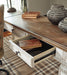 | Details | Made of wood, engineered wood and veneers, with cast resin components, Antiqued two-tone finish, Smooth-gliding drawer with dovetail construction, Dark bronze-tone finished metal hardware, Includes AC power supply, USB charging, Spring lift top, Assembly required | |