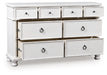 | Details | Made with hardwood solids, veneers and MDF substrates, Rubbed antiqued white finish, Metal hardware with pewter-tone finish, 8 smooth-gliding drawers with fully finished interiors, French/English dovetail construction and heavy-duty ball-bearing side glides, Top drawers felt lined | |