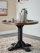 | Details | Includes dining table top and base, Made with pine solids, pine veneer and engineered wood substrate, Rustic black finish on base, Rustic brown finish on tabletop, Sturdy post and bracket base design, Assembly required | |