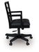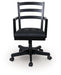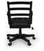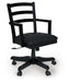 | Details | Frame made with hardwood solids, Warm satin black finish, Polyester upholstery, Foam cushioned seat, Adjustable height, Casters for easy mobility, 360-degree swivel, Assembly required | |